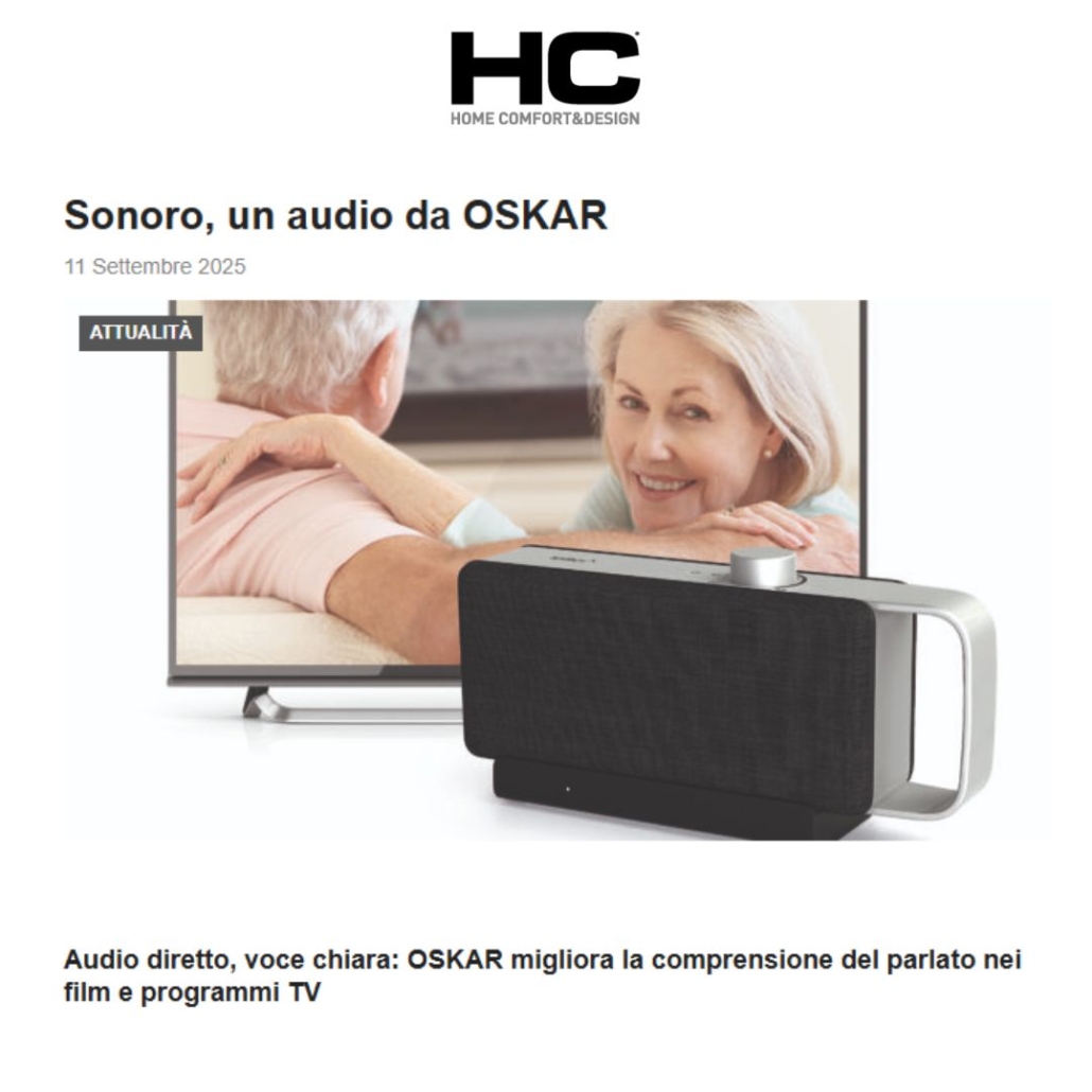La rivista HC – Home Comfort&Design ha dedicato un nuovo articolo a Sonoro OSKAR, il nuovo amplificatore vocale portatile per TV progettato per migliorare la chiarezza del parlato